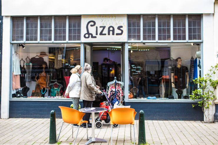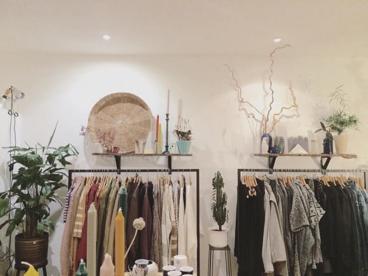 Als je aan komt fietsen zie je al direct dat het paarse bankje voor de deur uitnodigend is. Al die bloemen en de prachtige klimop tegen de gevel nodigen je uit om binnen een kijkje te nemen. Perfect winkeltje om in rond te snuffelen. Het lijkt net alsof je door je eigen kledingkast heen loopt en zal denken wat trek ik nu eens aan. Knus sfeertje ook!