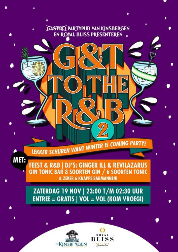De hele avond R&B tot je er bij neer valt en onbeperkt G&T keuze vanuit onze speciale pop up bar!