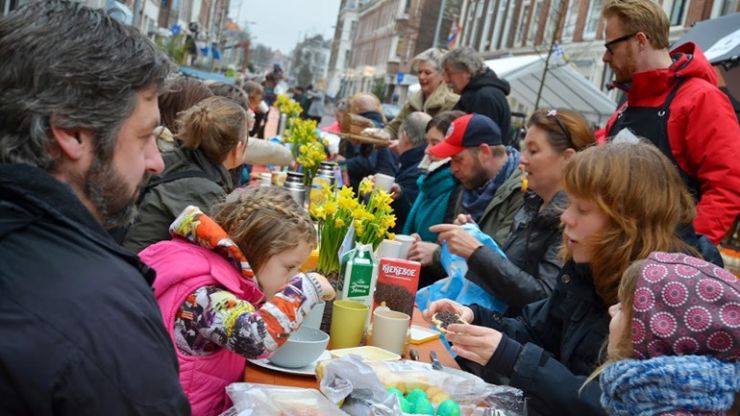 De samenwerking tussen beide buurtinitiatieven is niet nieuw. Al eerder, om precies te zijn op 6 april 2015, werd er een Paasontbijt georganiseerd als feestelijke opening van de herinrichting op de Prins Hendrikstraat. Voor deze gelegenheid kon je aanschuiven aan de 300 meter lange ontbijttafel voor het gezelligste ontbijt van Den Haag. Ondanks wat druppels regen kwam Wethouder Revis ook een kijkje nemen en was bijzonder ingenomen met de stemming en verbondenheid in ons stadsdeel. Of, zoals een bezoeker opmerkte, ‘het moet hier wel heel erg leuk zijn als er zelfs met dit verschrikkelijke weer zoveel mensen op komen dagen.'