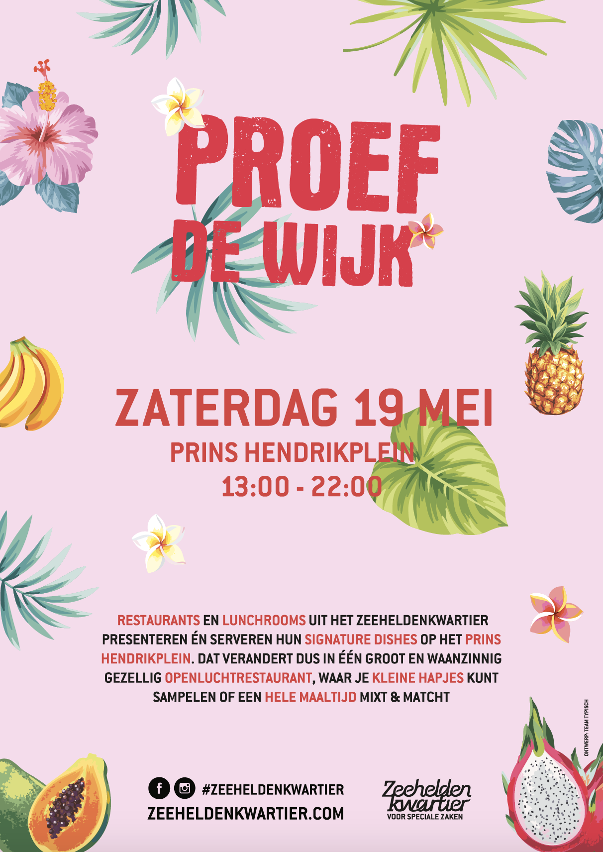 Alle restaurants en lunchrooms uit het Zeeheldenkwartier presenteren én serveren hun signature dishes op het Prins Hendrikplein. Dat verandert dus in één groot en waanzinnig gezellig openluchtrestaurant, waar je kleine hapjes kunt sampelen of een hele maaltijd mixt & matcht. Of je nu gaat voor het betere Oosterse gevoel of je liever laat verleiden door de geur van langzaam geroosterd vlees; als je smaakpapillen toe zijn aan nieuwe ervaringen, is Proef de Wijk je ideale zaterdag-middag-avond-bestemming.