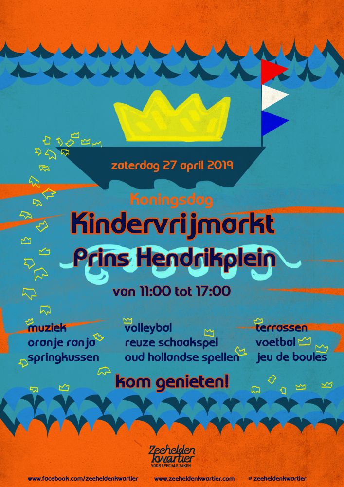 Zaterdag 27 april is het koningsdag en wordt er vrijmarkt georganiseerd op het Prins Hendrikplein in het Zeeheldenkwartier!