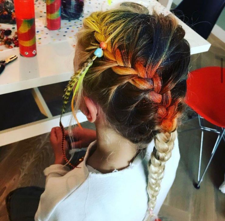 De Kinderkapper is aanwezig voor gratis vlechtjes met veren.