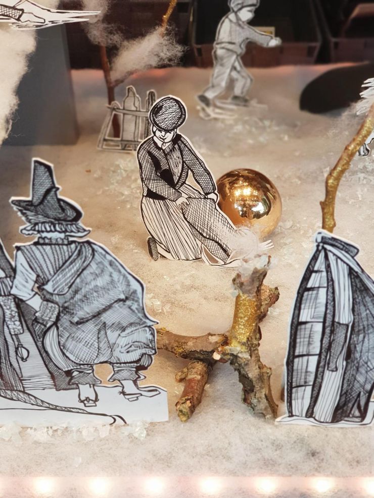 Een eindejaarsetalage met een verhaal, geinspireerd op het schilderij 'Ijsvermaak' van Hendrick Averkamp. Scan de QR codes en lees het verhaal achter dit schilderij.